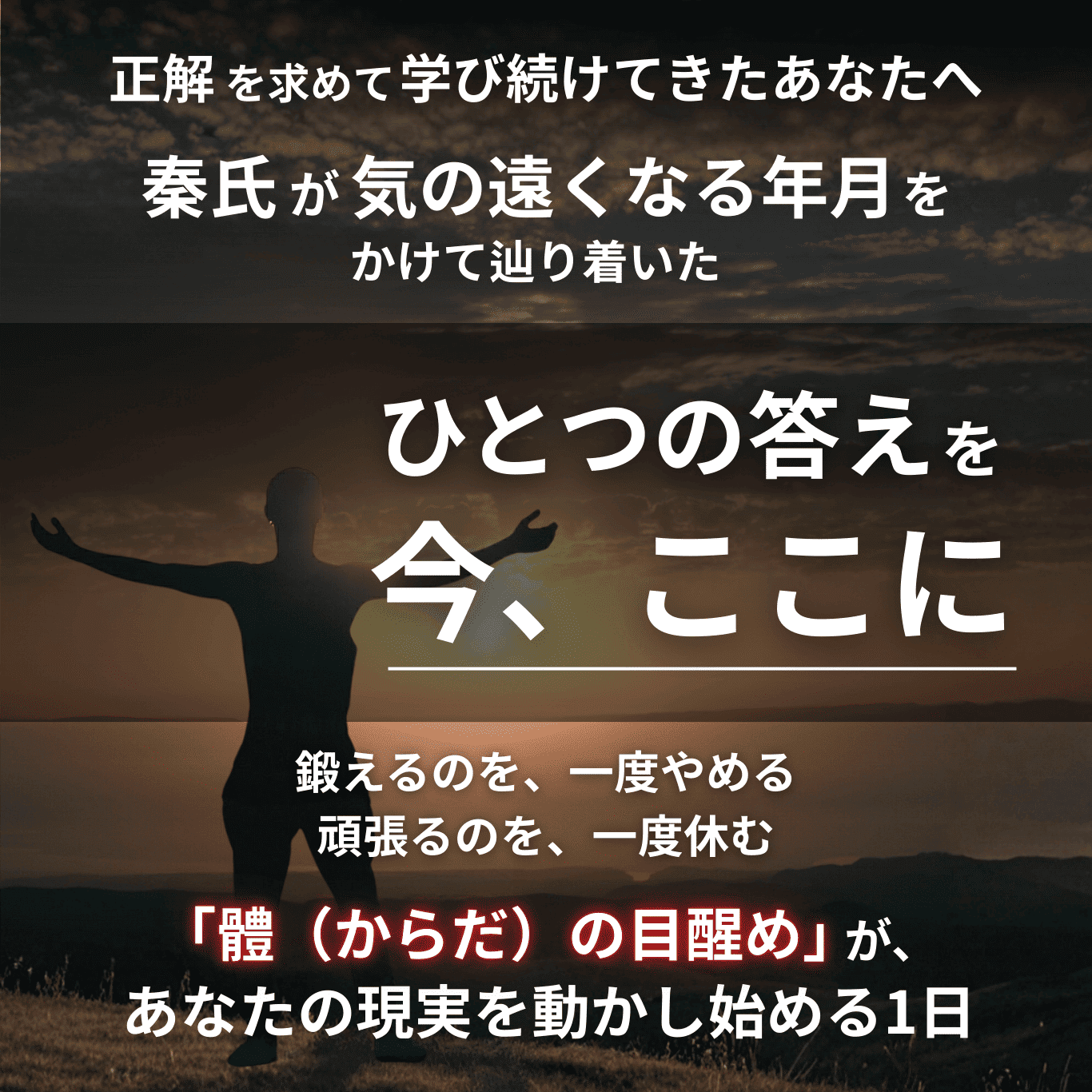 そんなあなたに、失われてしまった「體への信頼」を取り戻し、思考と體の分断を、静かに繋ぎ直す「確信」への入り口を、今、ぜひ見つけて欲しいのです。